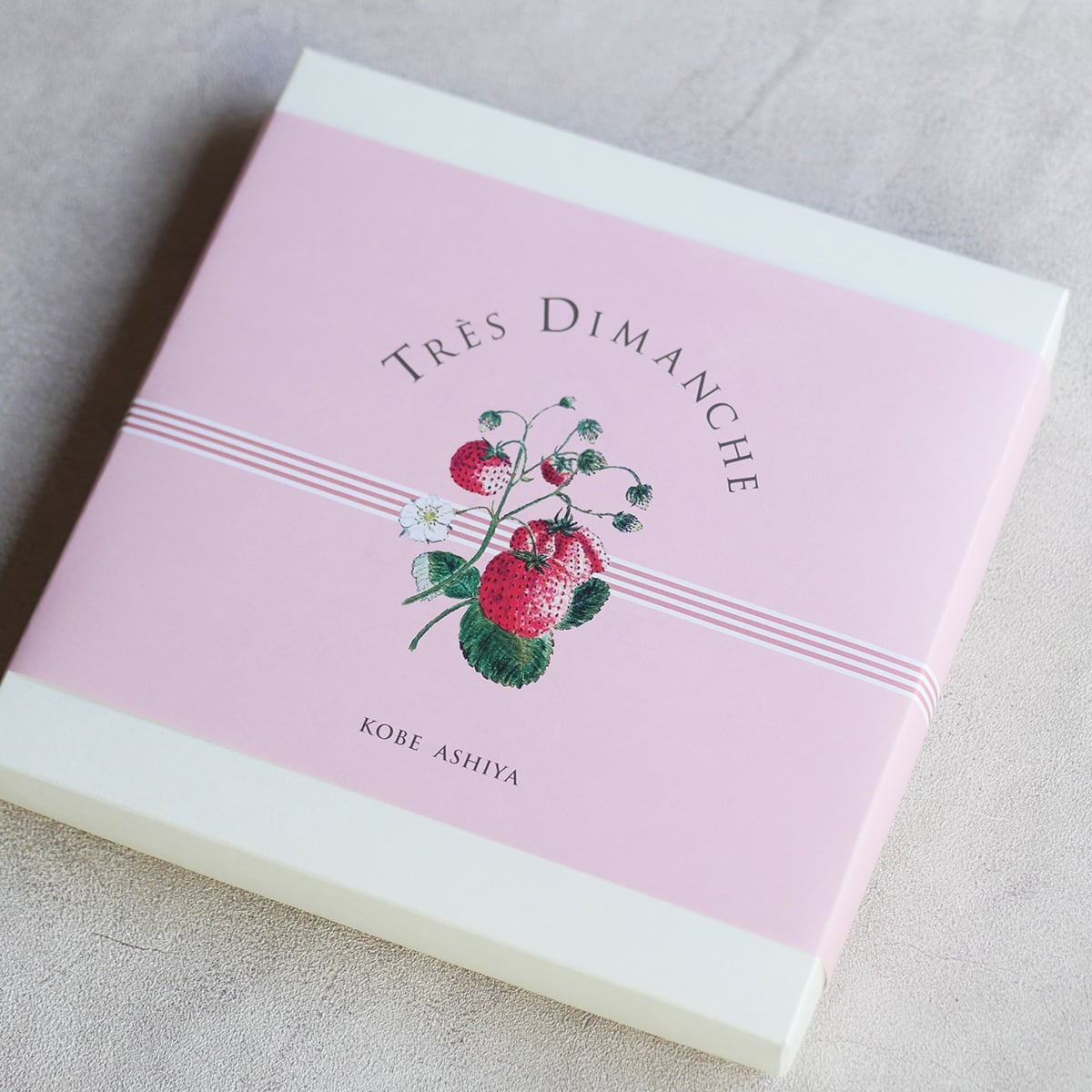 箱はリボンではなく、いちごのイラストをあしらったペーパーを巻いてお届けいたします。