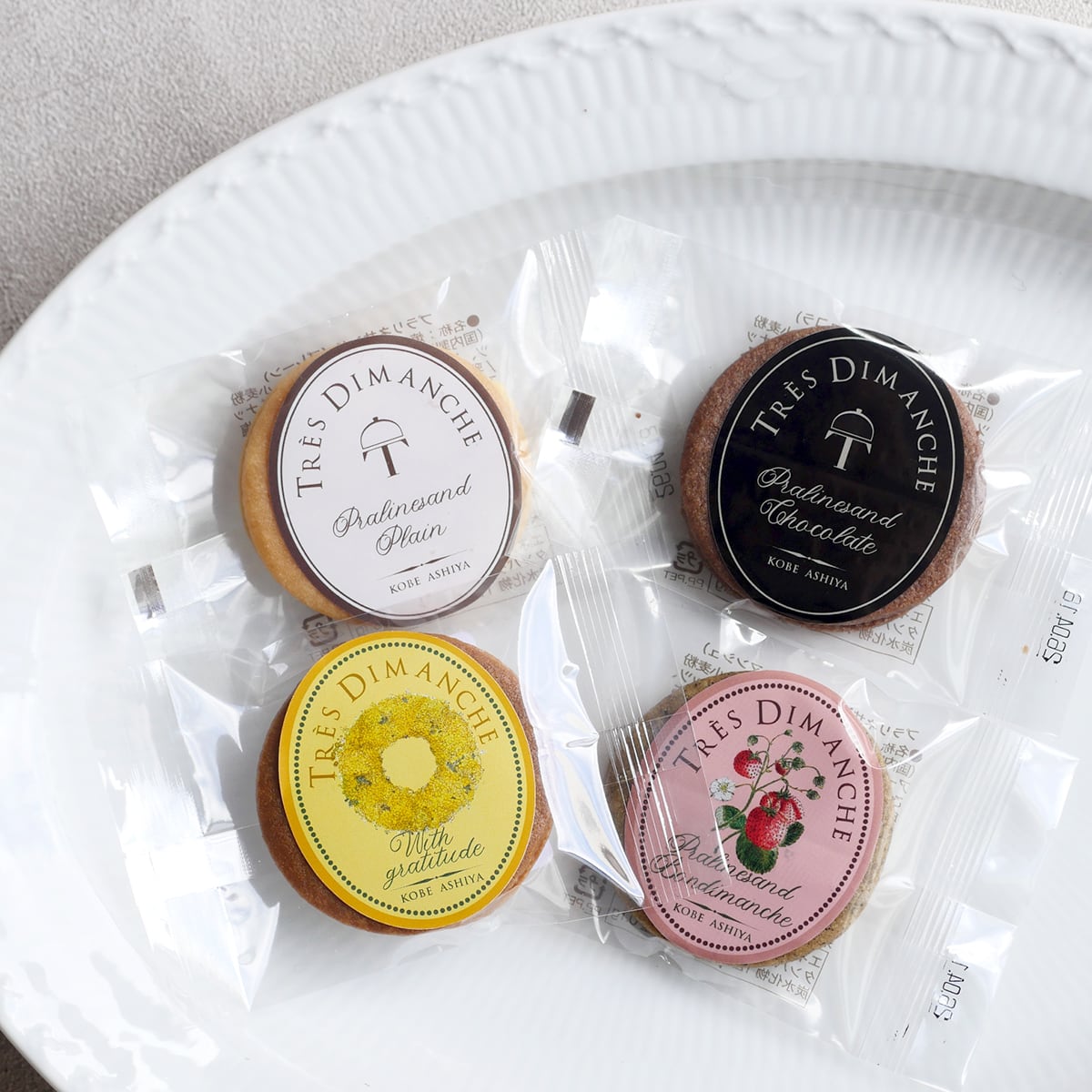 サクサクのサブレに自家製プラリネクリームをサンドした人気のプラリネサンドから、定番の「プレーン」「ショコラ」、ビターな香ばしさが広がる「キャラメル」、そして今の季節にぴったりなイチゴの「ボンディマンシュ」を詰め合わせました。