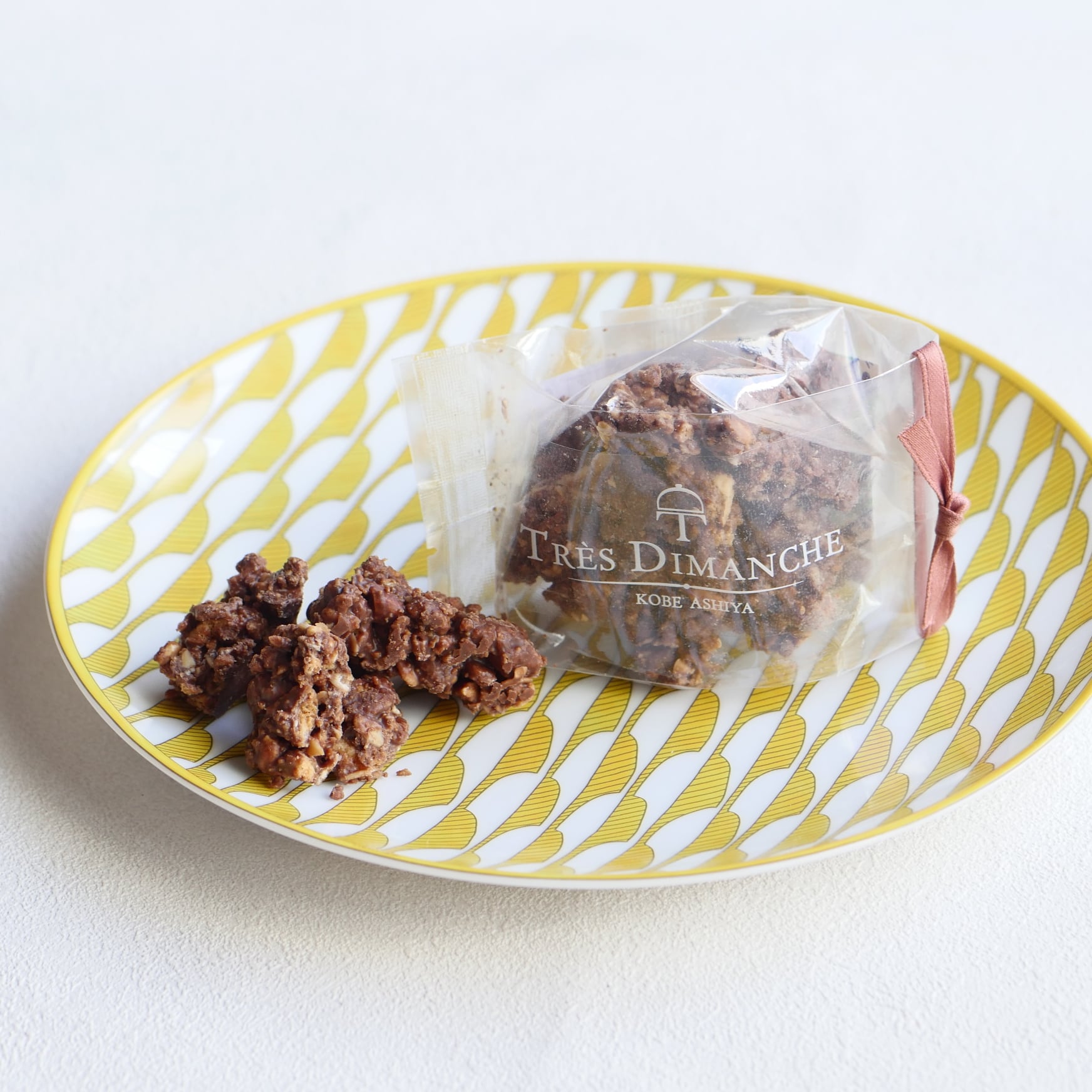 お米とメープルのグラノーラを砕き、そこにミルクチョコレートを絡めたチョコクランチ。