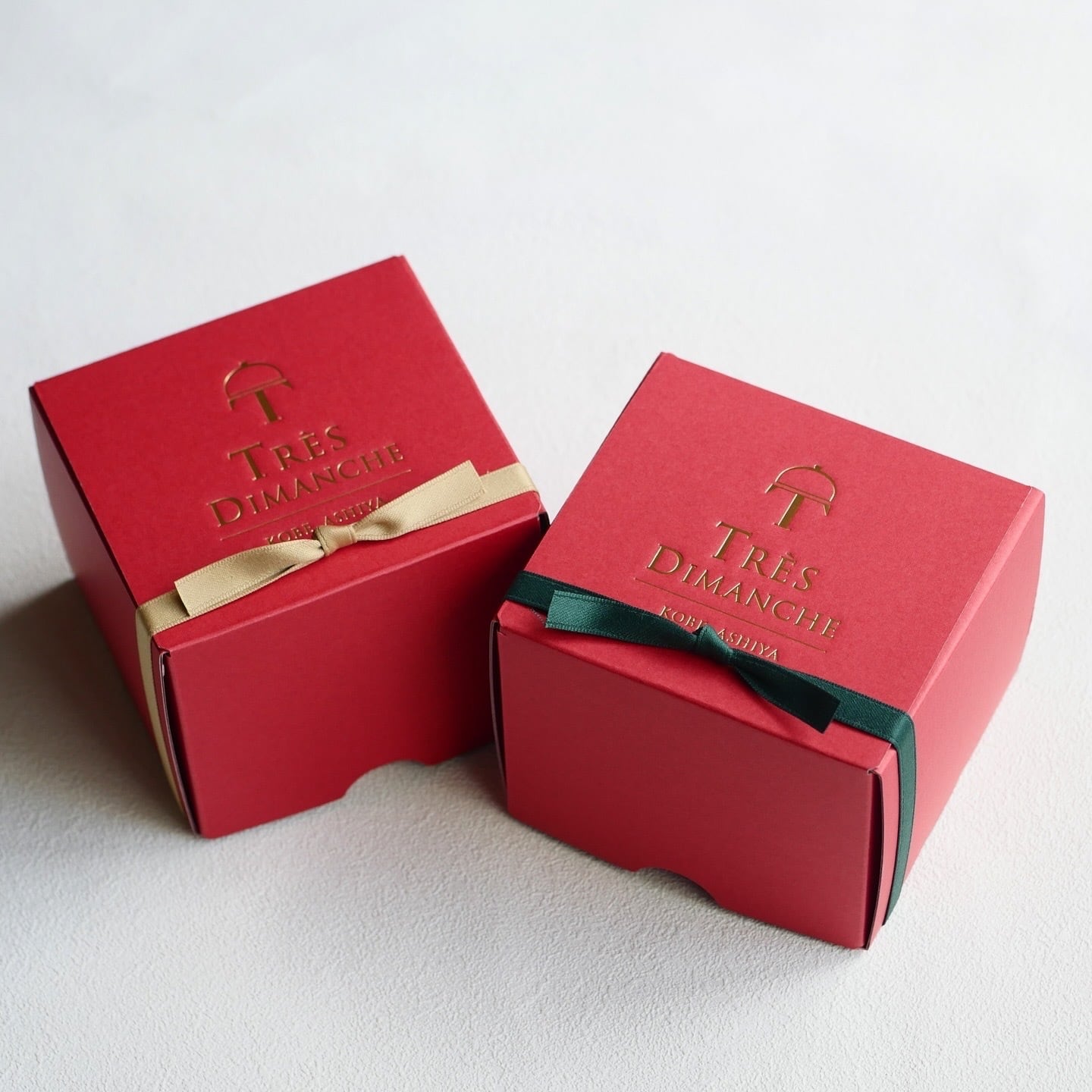 パッケージもクリスマス仕様で、贈り物としても華やかに仕上げました。